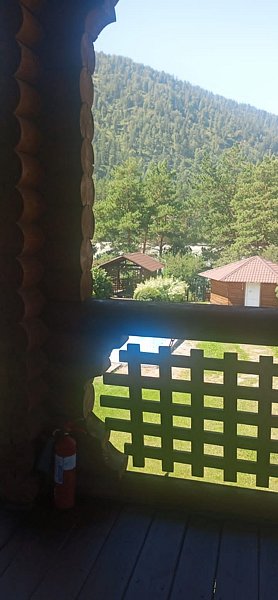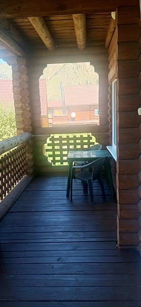 Просторный трёхместный номер «Люкс» с прямым видом на реку Катунь расположен на самом берегу, что позволяет наслаждаться природой Алтая в любой момент.