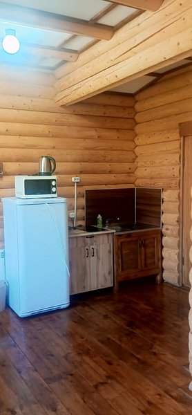 - Полностью оборудованная кухня с электрической плитой, холодильником, чайником, набором посуды и микроволновой печью — готовьте любимые блюда!