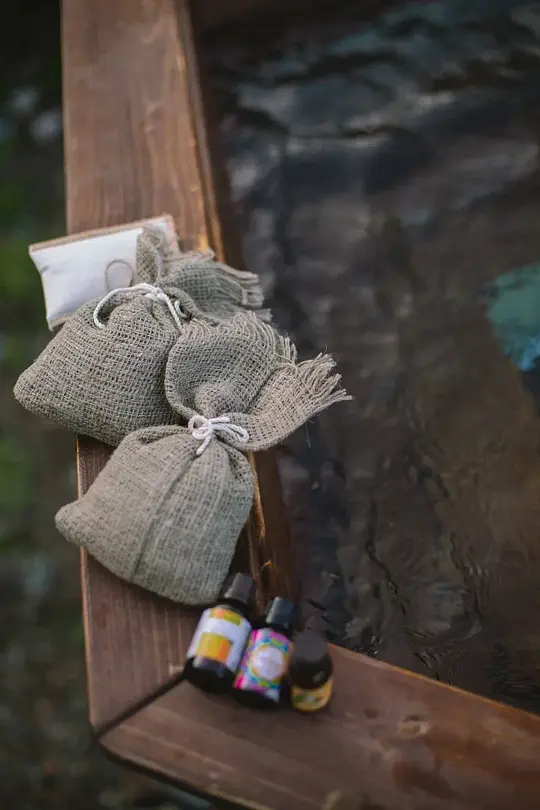 Чан с травами и эфирным маслом на берегу реки.