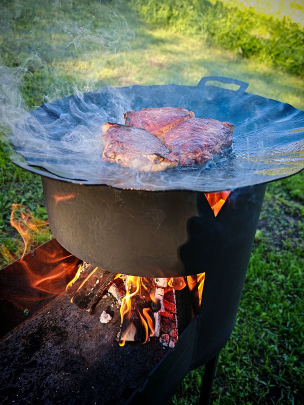 При необходимости предоставляется: казан, садж, шампура, опахало, решетка, уголь/дрова, розжиг.