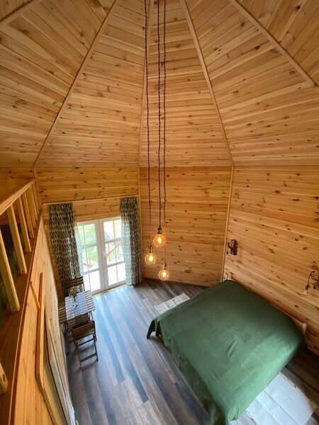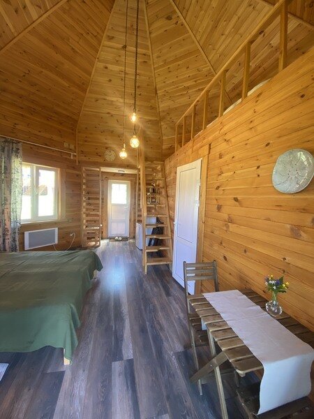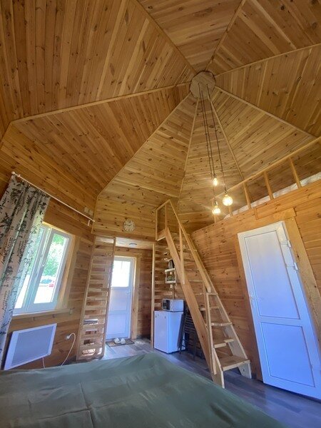 Домик в стиле алтайского аила подарит вам единение с природой, глубокий спокойный сон под куполом в 5,5 метров и и пробуждение под пение птиц.