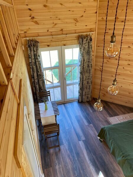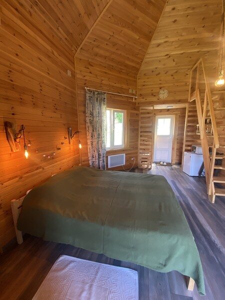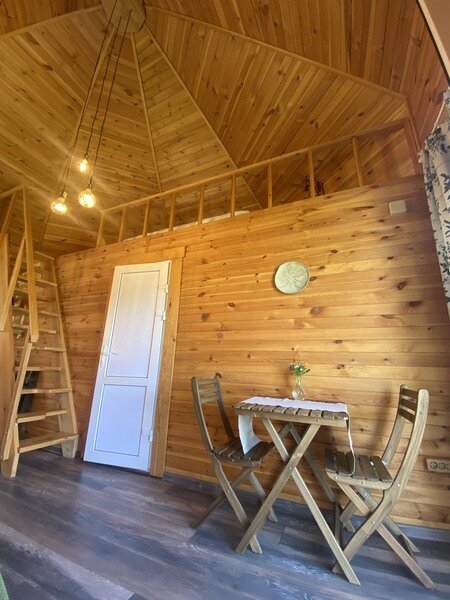 Семейный отдыхДостоинстваКомфортный домик, места достаточно много. На втором этаже находится двуспальная кровать, на первом этаже - еще одно спальное место. Стол с удобными стульями, чайник, микроволновая печь и посуда. В принципе, всего хватает.