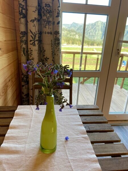 В аиле есть все необходимое для комфортного пребывания 4 человек :2 спальных места с ортопедическими матрасами и белоснежным постельным бельем, полотенца и душевые принадлежности, теплый пол в санузле и массажная зона для стоп с катунскими камушками, фен, терраса для встречи фантастических закатов, бокалы для вина, холодильник, чайник , микроволновка и посуда.