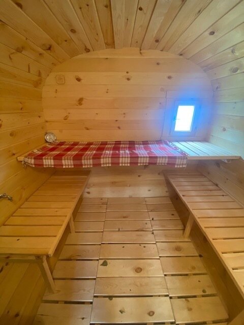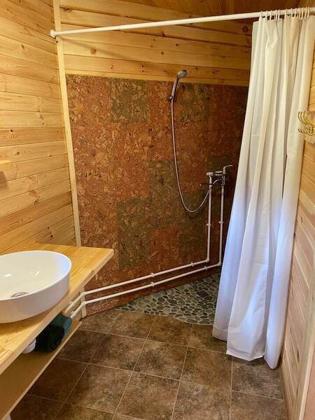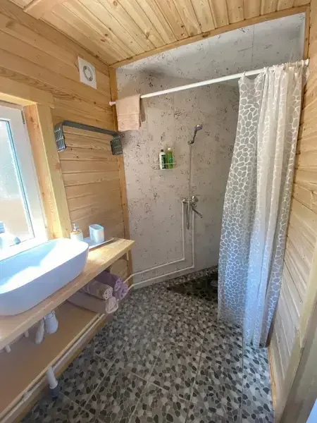 В аиле 2 удобных спальных места с ортопедическими матрасами и белоснежным бельем ,есть санузел с массажной зоной из камней для стоп, пушистые полотенца и мыльные принадлежности, теплый пол, холодильник, посуда, чайник, терраса с фантастическим видом и возможностью завтракать ,ужинать ,загорать на ней и смотреть на закат и звездное небо.