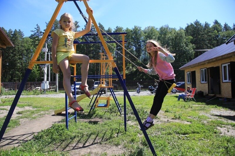 Семейный отдыхДостоинстваНа территории есть бассейн, батуты и беседки с видом на реку Катунь. Отличное место для отдыха семей с детьми. Скромный и спокойный отдых без излишеств, кормят вкусно)