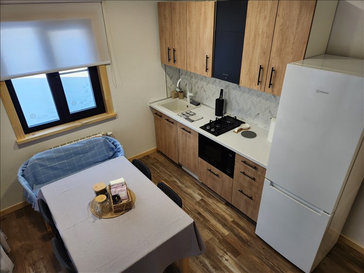 В апартаментах есть собственные кухня (газовая плита, электрический чайник, посудомоечная машина, микроволновка, большой холодильник, посуда для приготовления и сервировки) и санузел с душевой кабиной и стиральной машиной. На кухне и в первой спальне есть телевизоры со Смарт-ТВ.