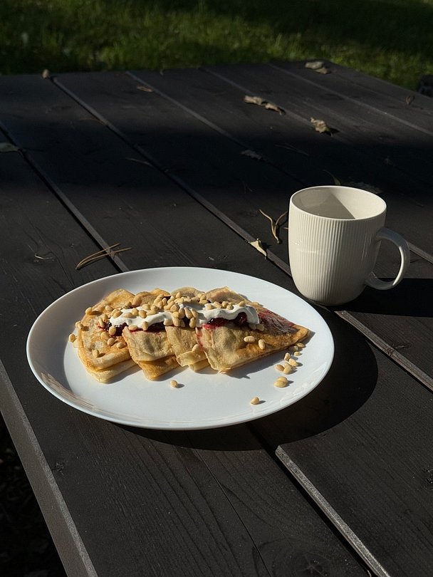 К завтраку в номерах всегда есть вкусный кофе в дрип-пакетах, ароматный сбор из алтайских трав и пакетированный чёрный чай. Вы можете включить завтрак в ваш тариф при бронировании или заказать его отдельно после заезда. Если вы торопитесь и не успеваете позавтракать в номере, вам соберут ланч-бокс с собой.