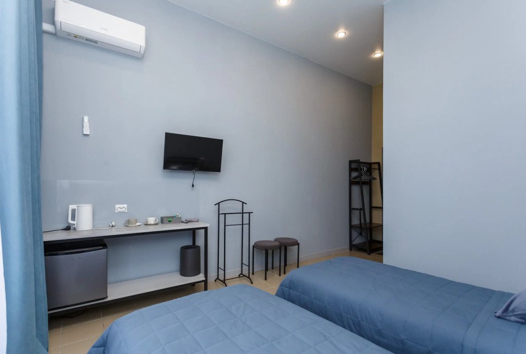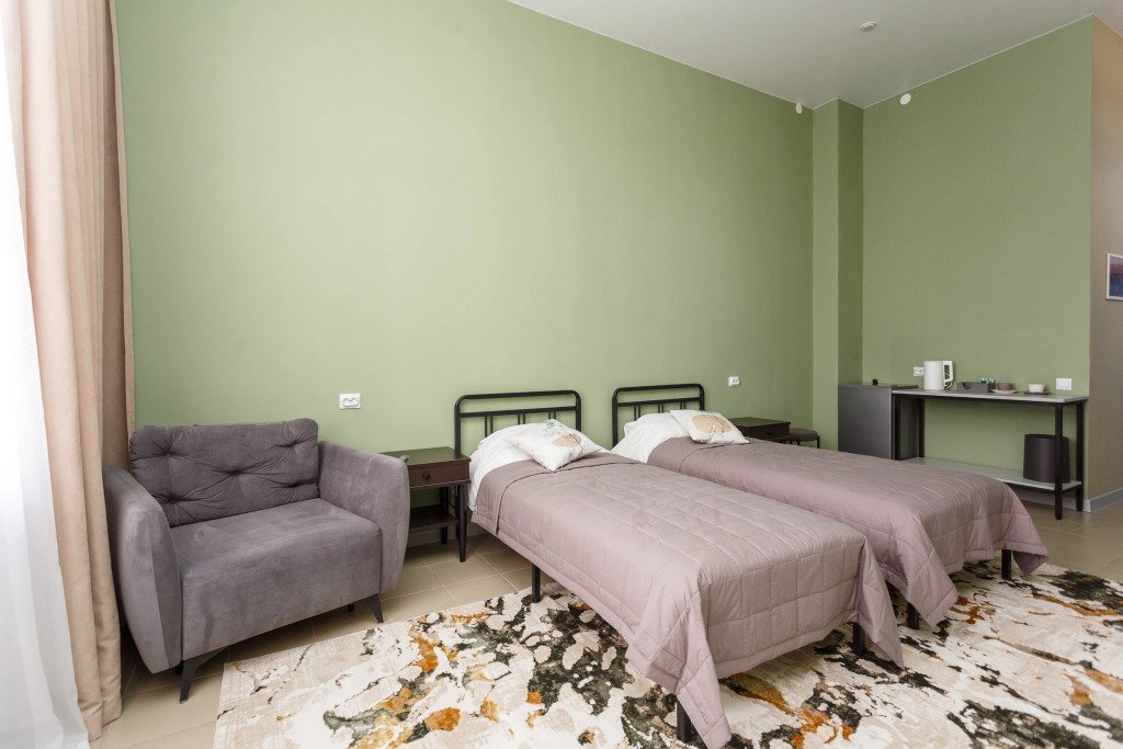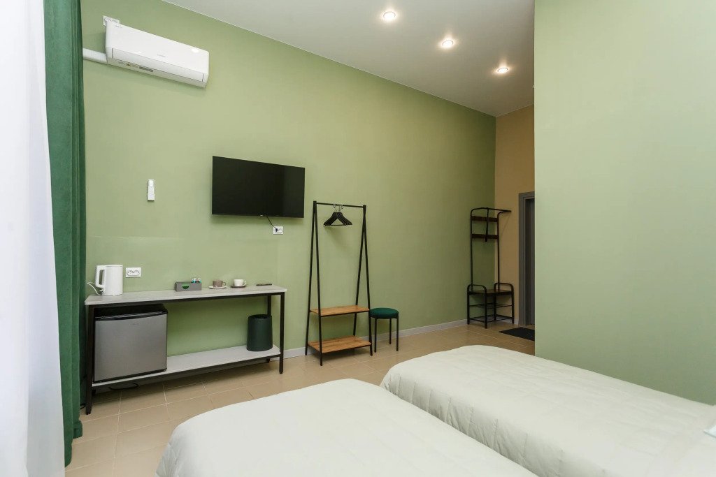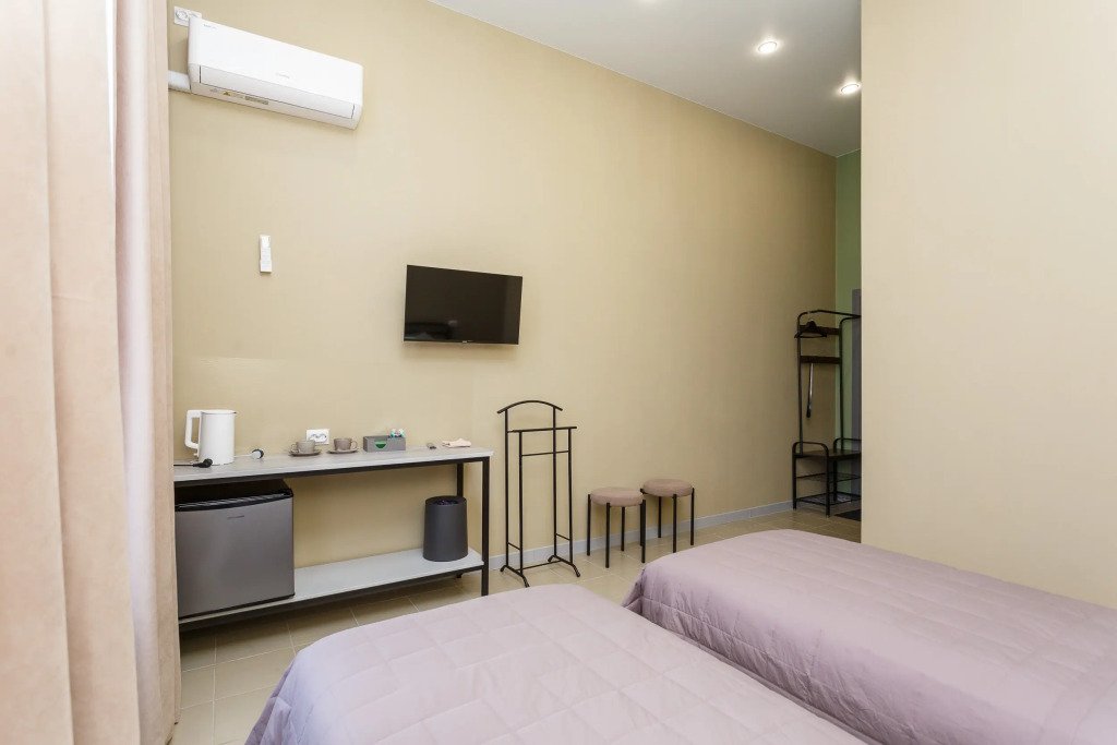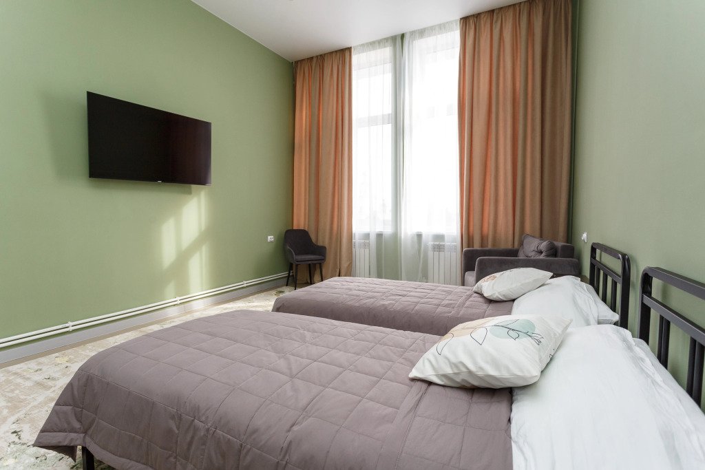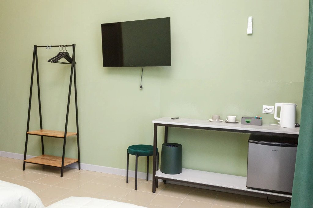 В номере гостей ждут телевизор и халат. Перечисленные услуги есть не во всех номерах.