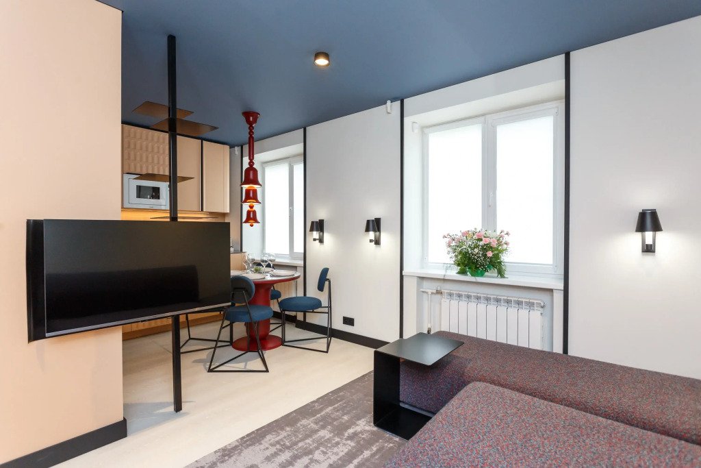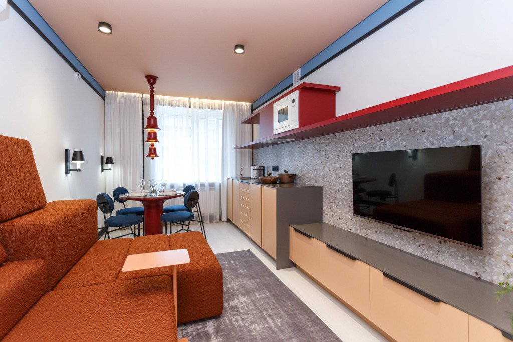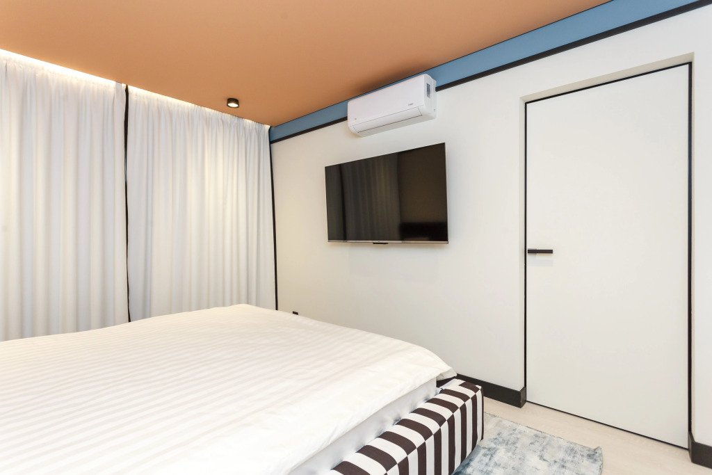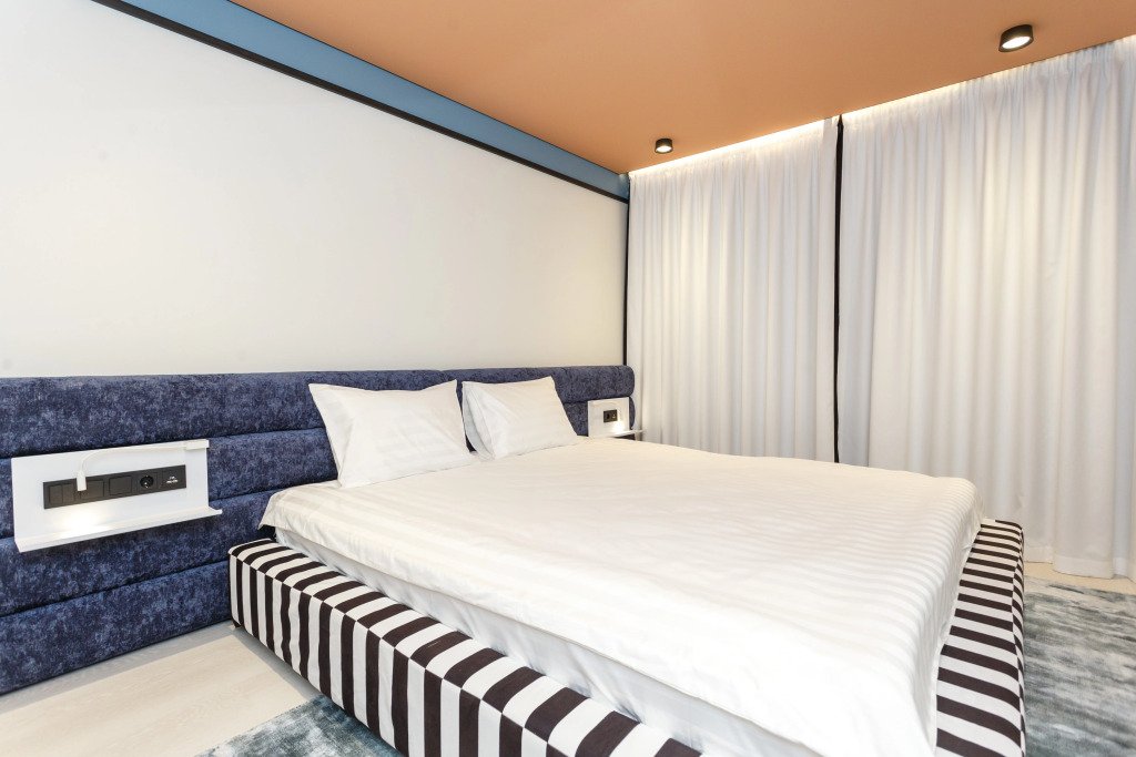 Номер уютно обставлен и оснащён необходимым, чтобы отдохнуть после долгого и насыщенного дня. Имеются телевизор. Оснащение зависит от выбранной категории номера.