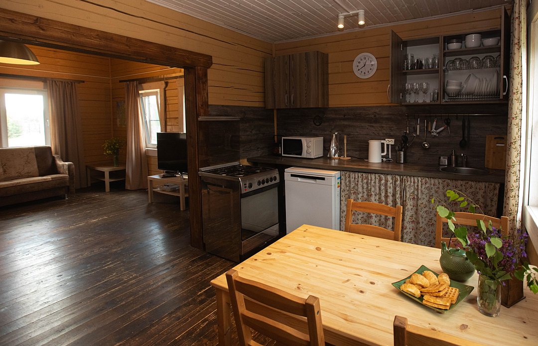 В домах вас ожидают комфортные условия для отдыха. Кухня оборудована всем необходимым для приготовления пищи: газовой плитой, посудой и всем необходимым для комфортного проживания. В домах есть все необходимое: водопровод, канализация, горячая и холодная вода, душевая кабина, стиральная машина, сушилки и холодильник. Для вашего удобства предоставляется спутниковое телевидение, быстрый интернет и мобильная связь. Из окон открываются захватывающие виды.