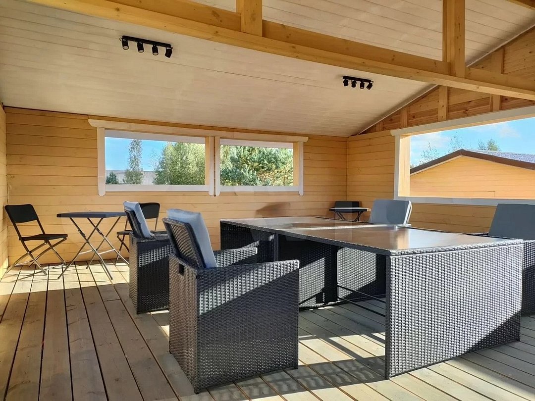 Всем вместе собраться удобно на просторной веранде на втором этаже, которую дополнительно предоставляем, чтобы получить удовольствие от общения и великолепных видов окрестностей на четыре стороны, вечером в «полнеба закаты».