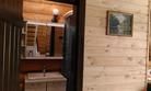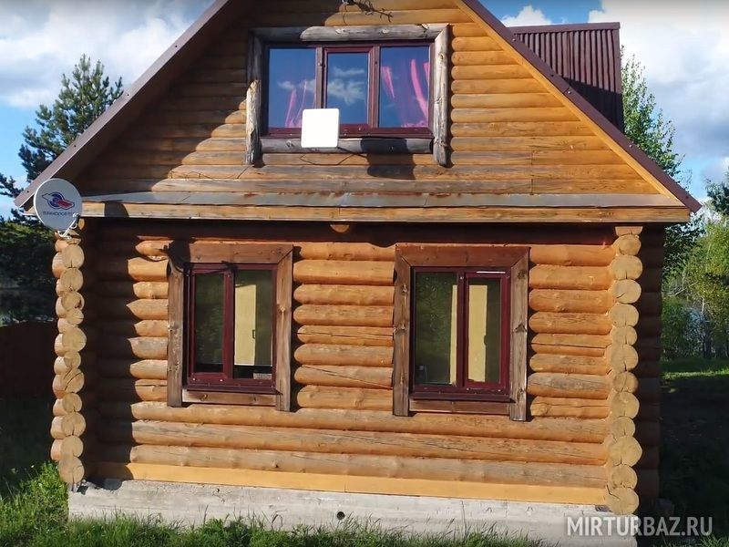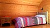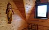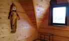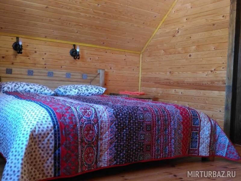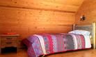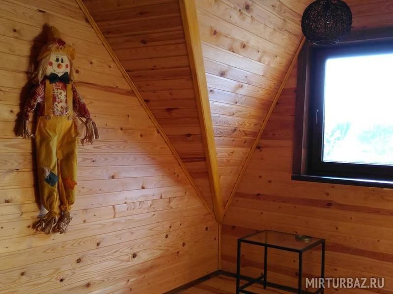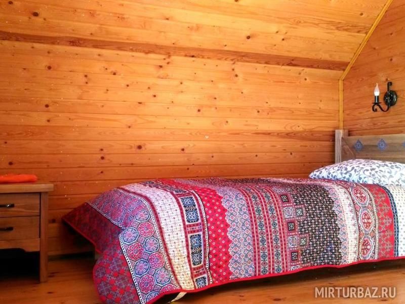 Вторая спальная комната. Расположена на 2 этаже. Вся отделка - натуральное дерево. Общая площадь 12 м². Большое окно с видом на озеро. Двуспальная кровать 140х200 см. 2 прикроватные тумбочки, 2 бра, люстра.