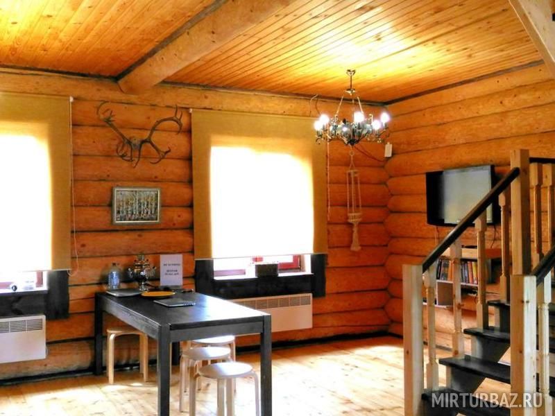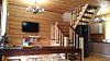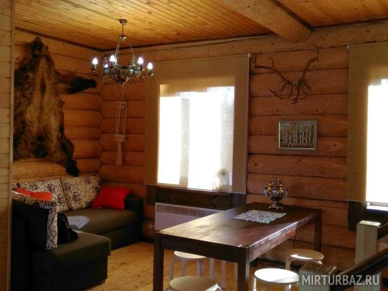Гостиная. Расположена на 1 этаже. Все из натурального дерева. Стильный интерьер. Общая площадь 36 м². 3 окна: 1 с видом на озеро. 2 на внутренний двор.
