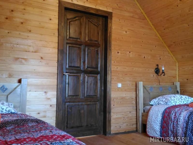 Первая спальная комната. Расположена на 2 этаже. Вся отделка - натуральное дерево. Общая площадь 16 м². Большое окно с видом на двор. 2 односпальные кровати 90х200 см. 2 прикроватные тумбочки, 2 бра, люстра.