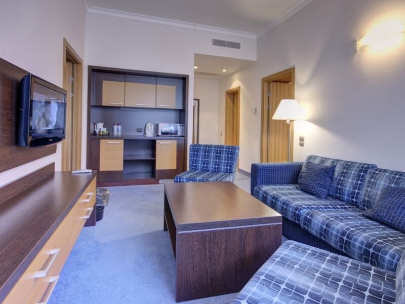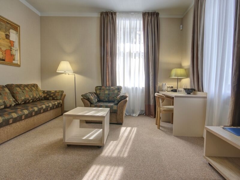 Гостей ожидает питание по системе «шведский стол» в основном ресторане, также на территории работает кафе-бар, есть два банкетных зала. В распоряжении отдыхающих банный комплекс с финской сауной, турецким хаммамом, русской баней, крытый 17-ти метровый бассейн. Свои услуги для гостей предлагает спа-центр, в котором гости могут пройти комплекс бальнеологических и косметологических процедур. В доме отдыха оборудованы теннисный корт и тренажерный зал, зимой прокладываются лыжные трассы, есть бильярд и караоке, по вечерам проводятся анимационные программы. Для детей в отеле оборудованы игровая комната и площадка, доступен прокат велосипедов, самокатов, коньков, работают воспитатели.