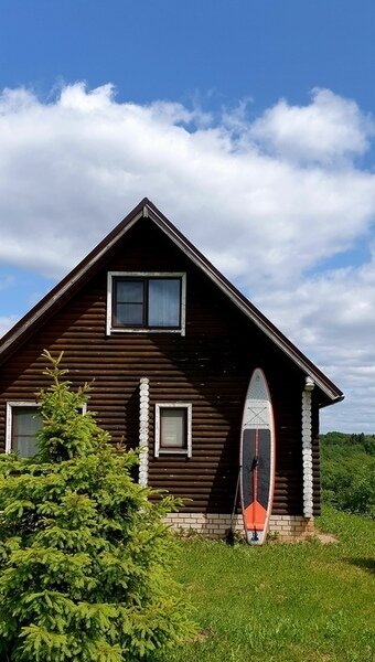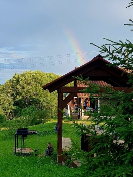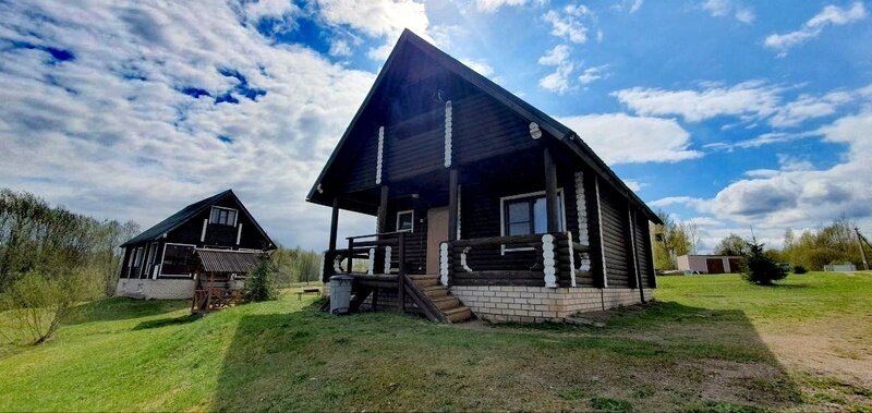 На территории находится 4 уютных коттеджа вместимостью до 9 человек, банька, беседки, мангалы для приготовления еды на свежем воздухе, волейбольная площадка и пирс.