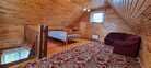 На первом этаже спальня с двуспальной кроватью, на втором этаже — спальня с пятью односпальными кроватями. 7 спальных мест. У дома открытая веранда и мангал.