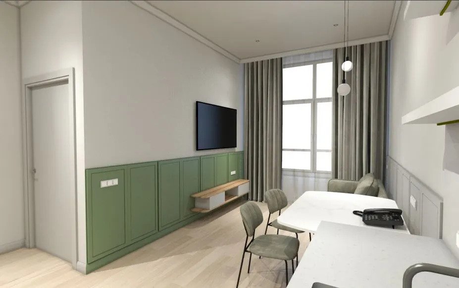 Номер уютно обставлен и оснащён необходимым, чтобы отдохнуть после долгого и насыщенного дня. Имеются телевизор. Перечисленные услуги есть не во всех номерах.