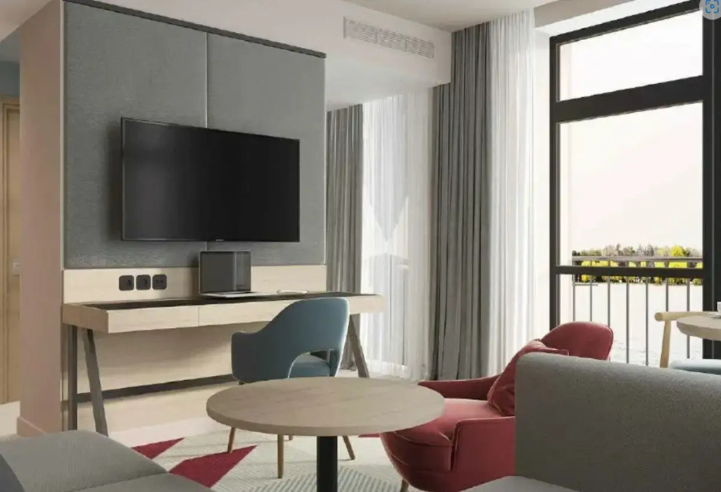 В номере есть телевизор. Оснащение зависит от выбранной категории номера.