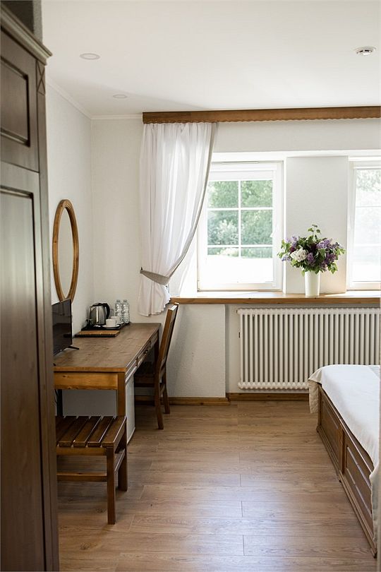 Интерьер номеров выполнен в стиле классических загородных отелей с использованием натуральных экологически чистых материалов. В номере работает Wi-Fi.