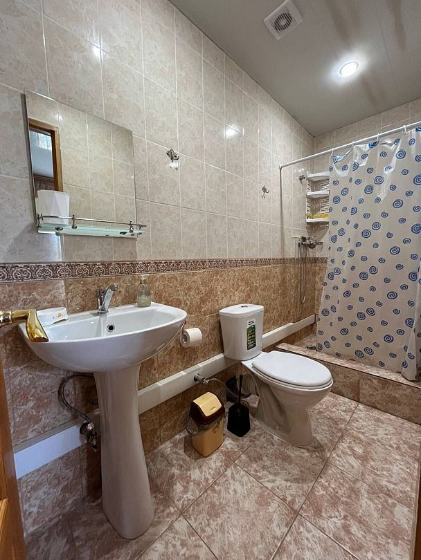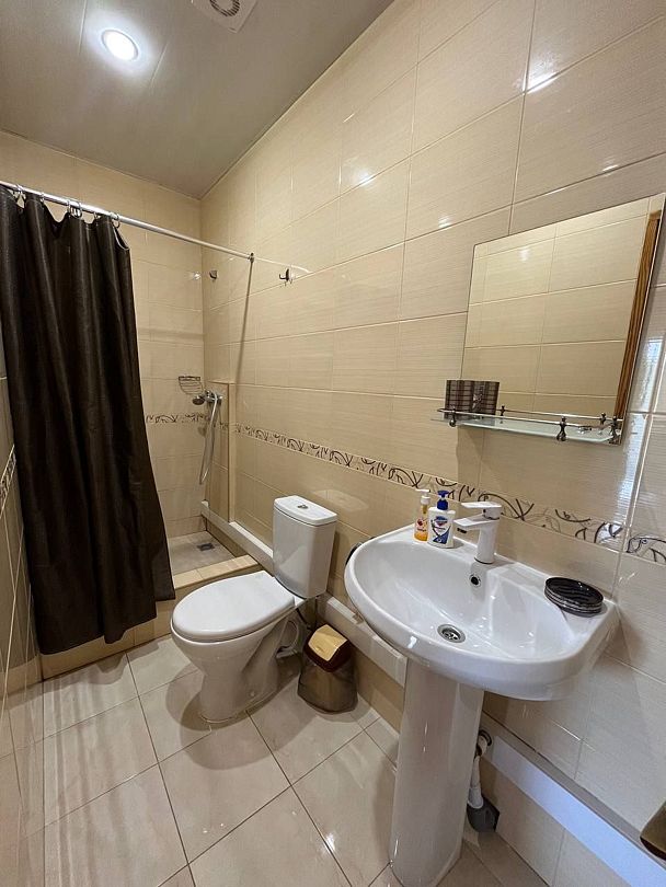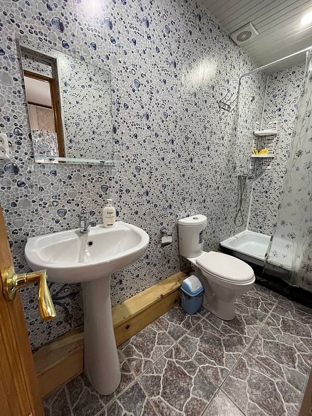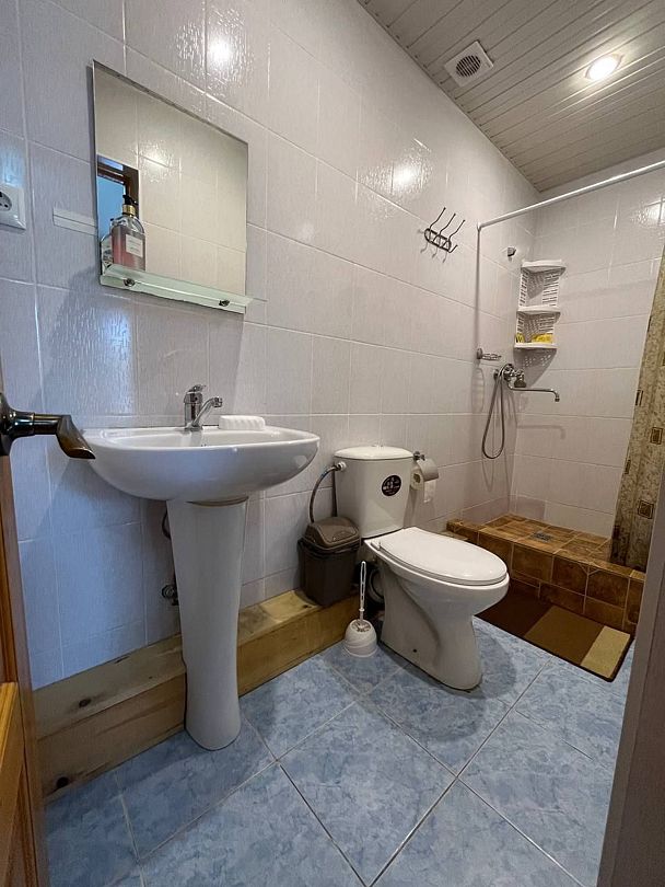 Индивидуальная ванная комната: душ, раковина, туалет.