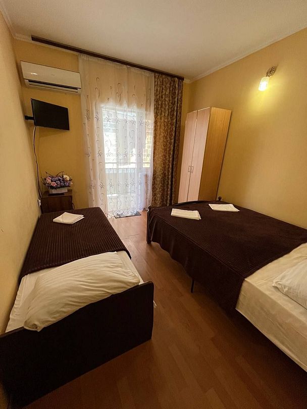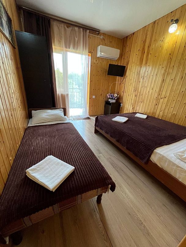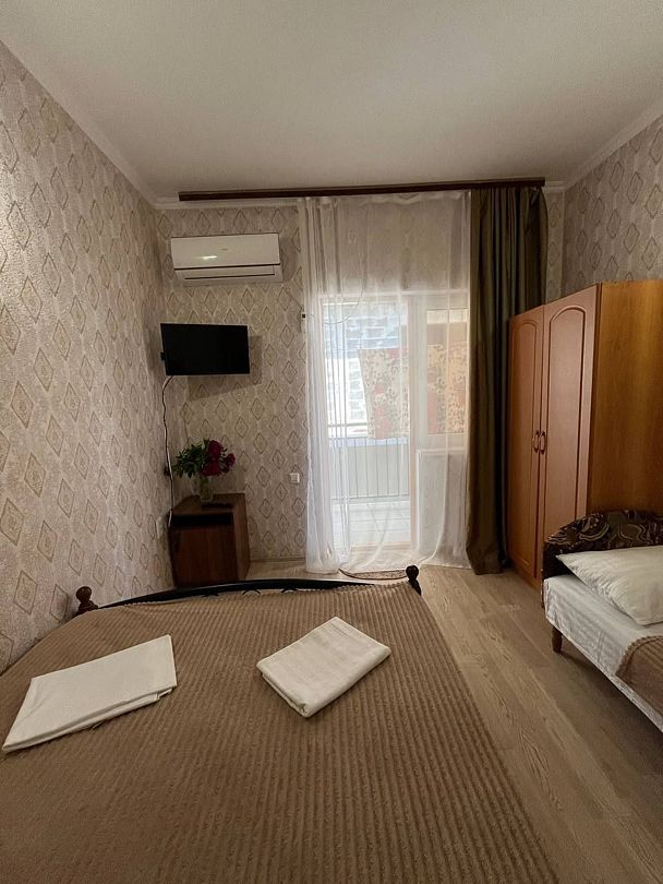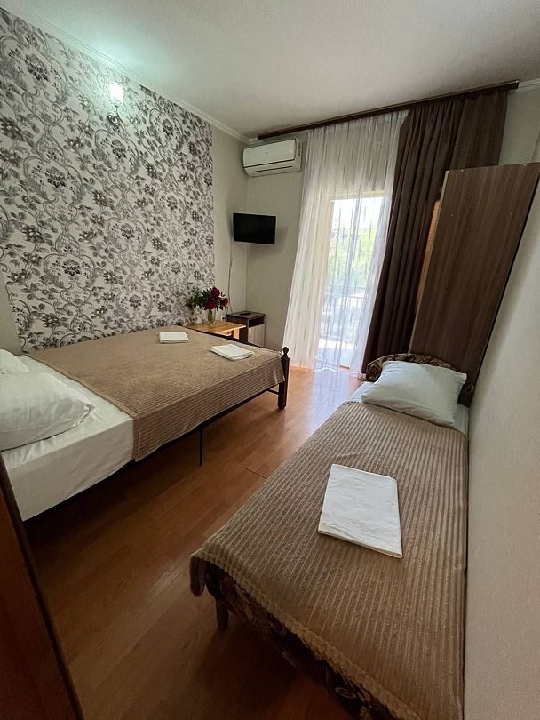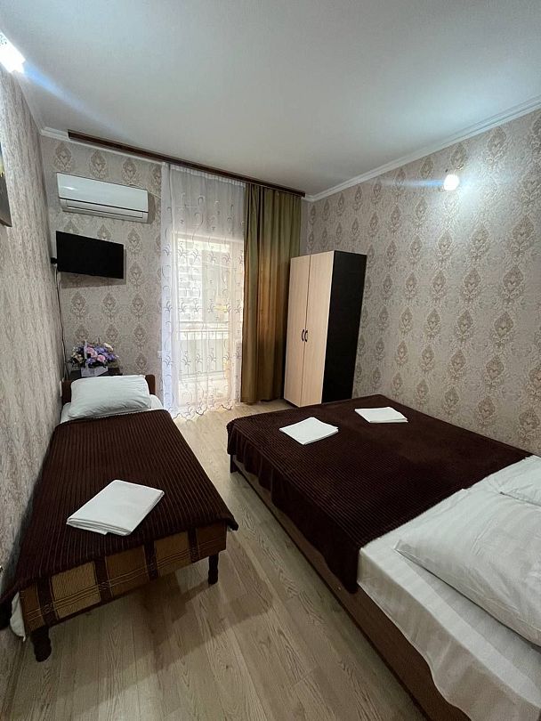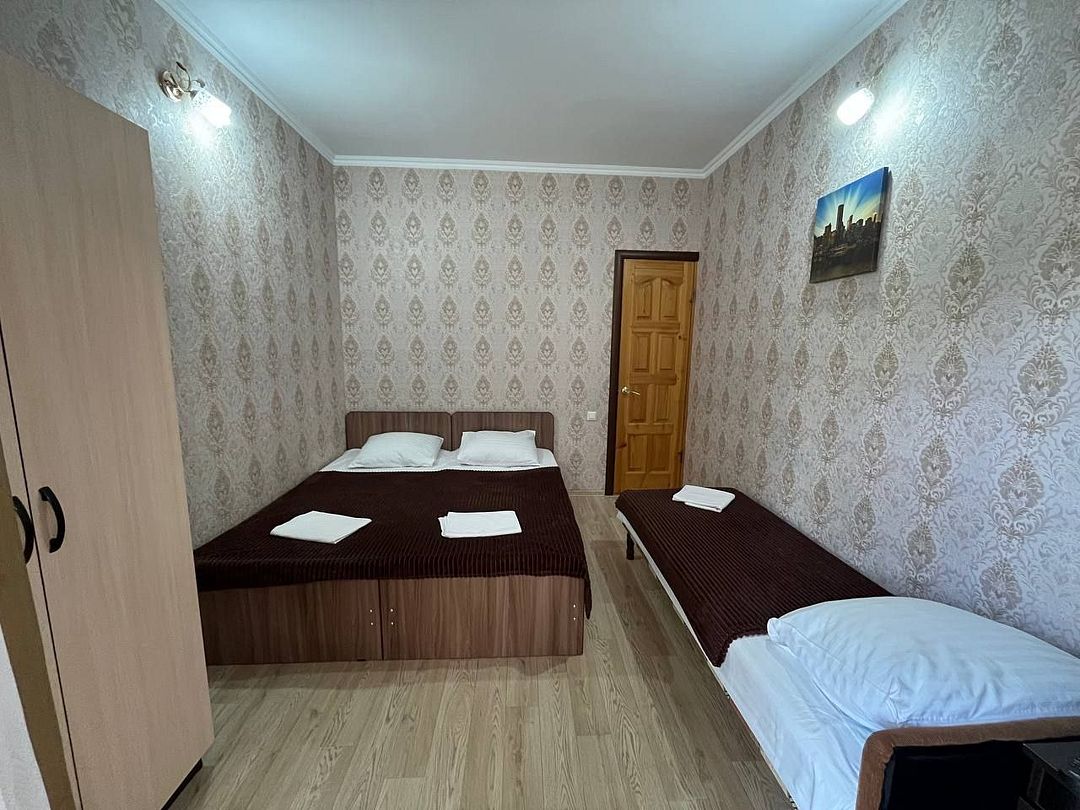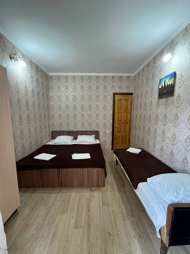 В номере: 1 двуспальная кровать и 1 односпальная
