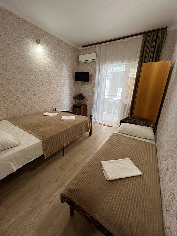 В номере: 1 двуспальная кровать, 1 двуспальный диван, 1 односпальная кровать.