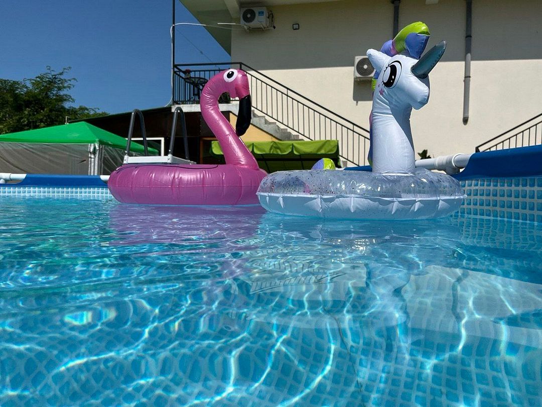 Летом особенно приятно окунуться в освежающий бассейн. Для маленьких гостей предусмотрена специальная зона под тентом-шатром, где они смогут весело провести время на свежем воздухе, играя с разнообразными игрушками и наслаждаясь общением со сверстниками. Это отличная возможность укрепить дружеские связи и получить незабываемые впечатления.
