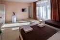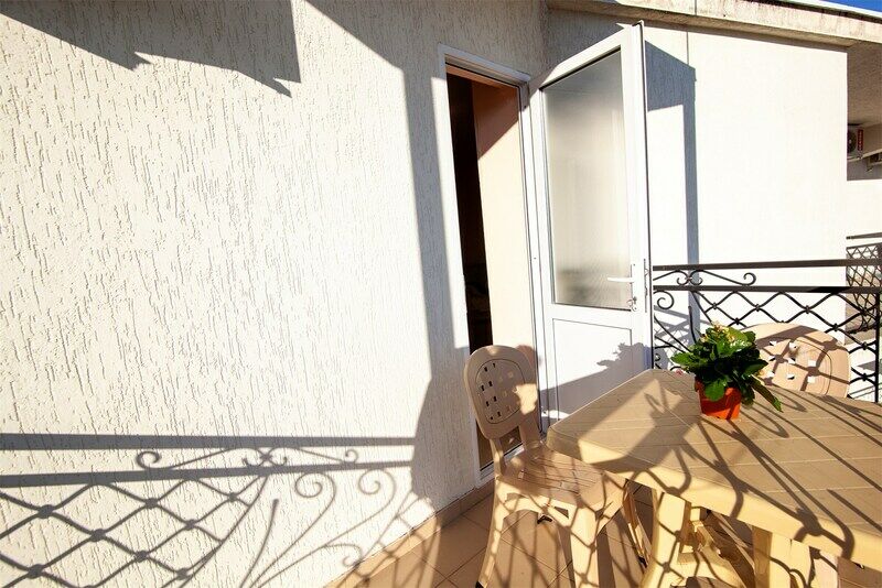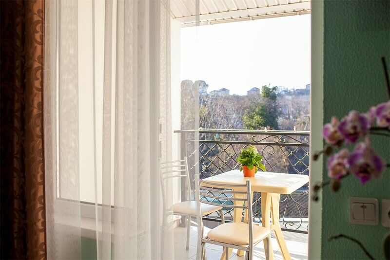 Из плюсов: недорого, доброжелательный персонал, вкусные завтраки, рядом кафе/магазины, до моря прогулочные шагом 10 мин, красивый вид с балкона, вся техника (кондиционер, телевизор, холодильник) в номере работает исправно. Также есть кухня, где можно готовить самостоятельно.