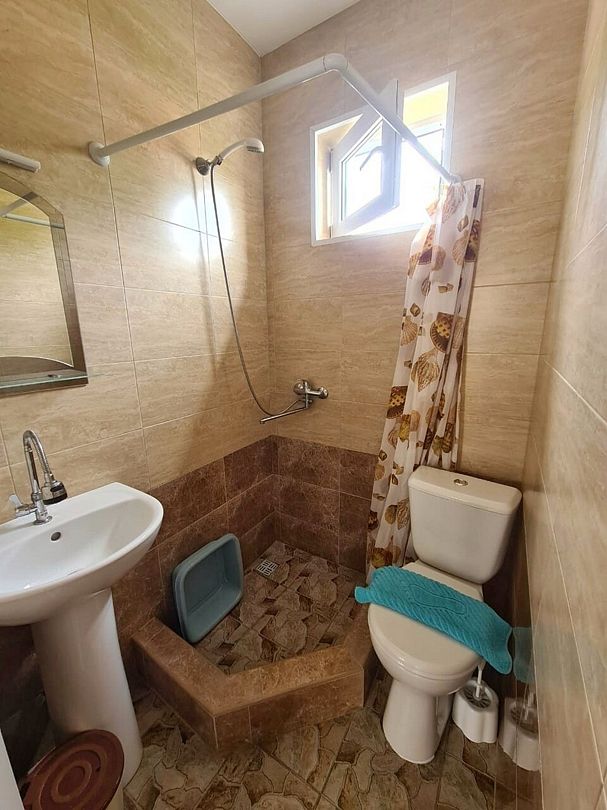 Индивидуальная ванная комната: душ, раковина, туалет.