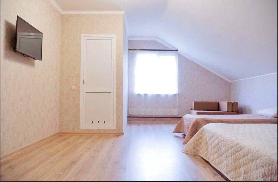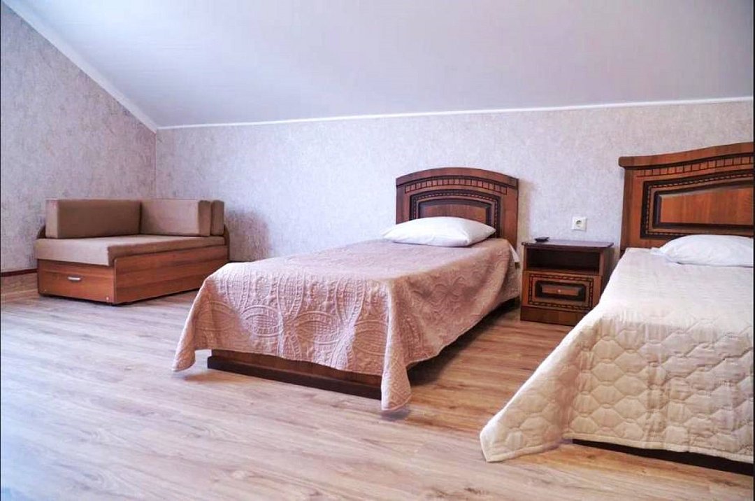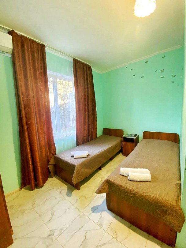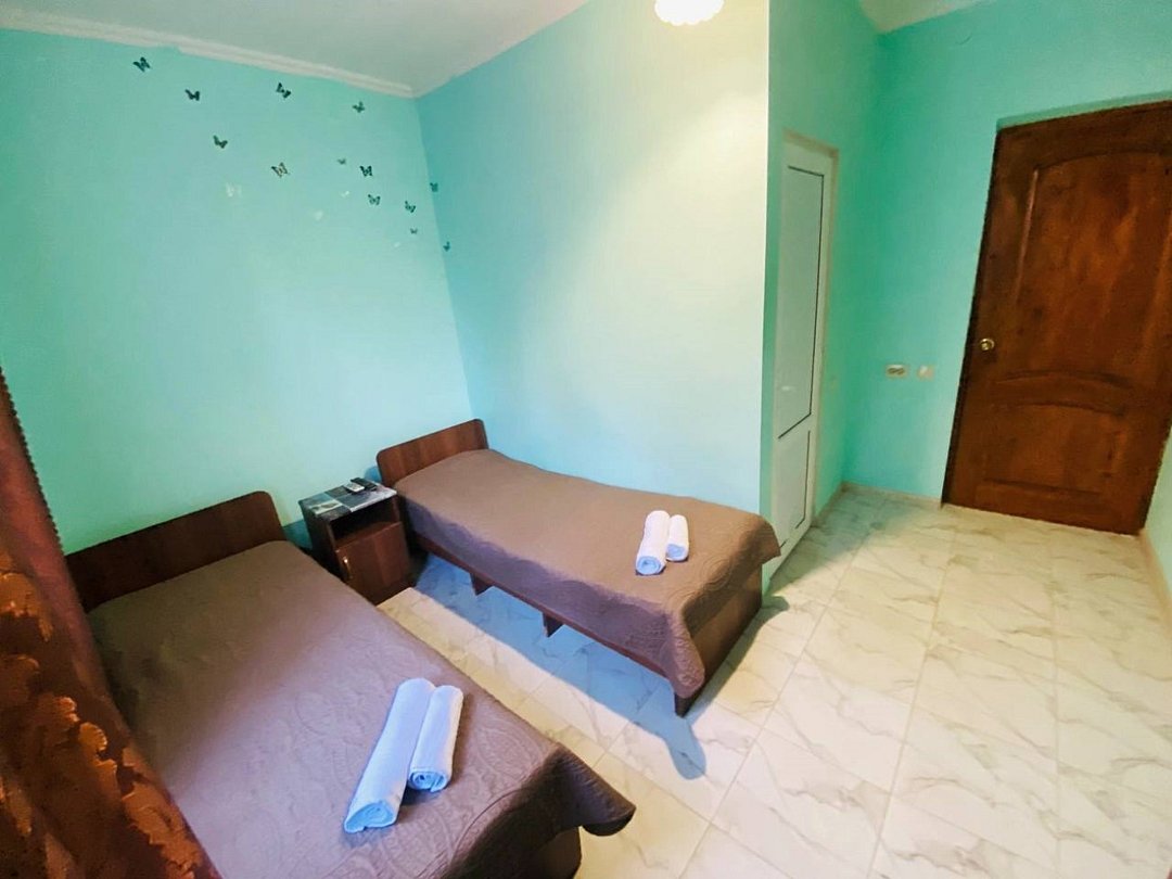 Четырех местный номер, расположен в гостевом доме "Вардане". В номере есть двуспальная кровать и несколько односпальных кроватей, телевизор и кондиционер. Санузел расположен в номере. Подходит для проживания четырех гостей. На территории гостевого дома имеется общая кухонная зона.