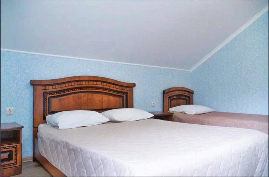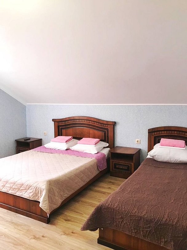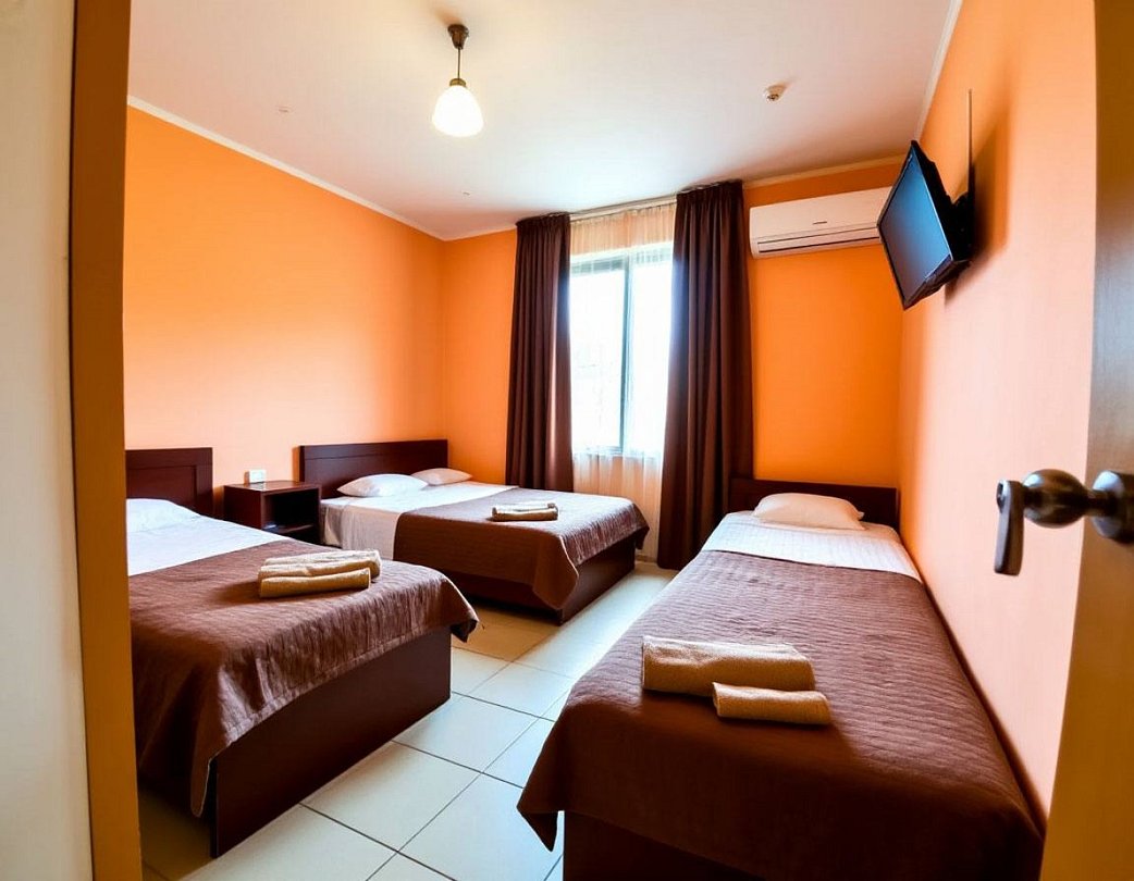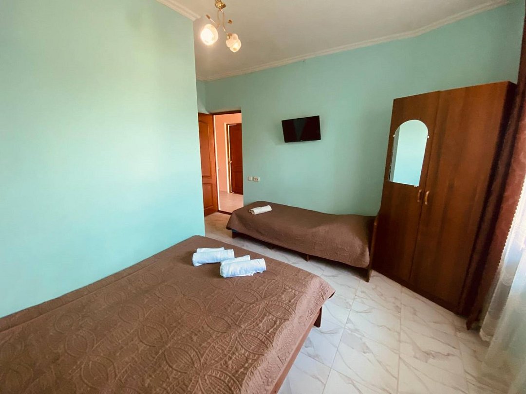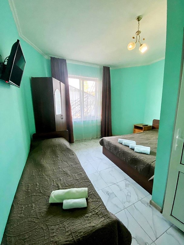 Трех местный номер, расположена в гостевом доме "Вардане". В номере есть двуспальная кровать и одна односпальная кровать, имеется телевизор и кондиционер. Санузел расположен в номере. Подходит для проживания трех гостей. На территории гостевого дома находиться общая кухонная зона.