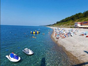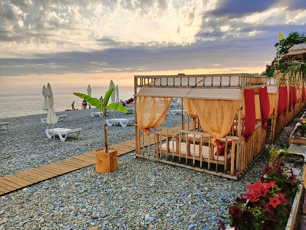 Тип пляжа: галечный, оборудованныйИнфраструктура: лежаки, зонтики, шезлонги -