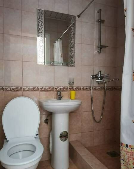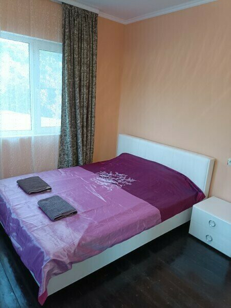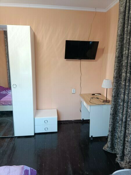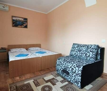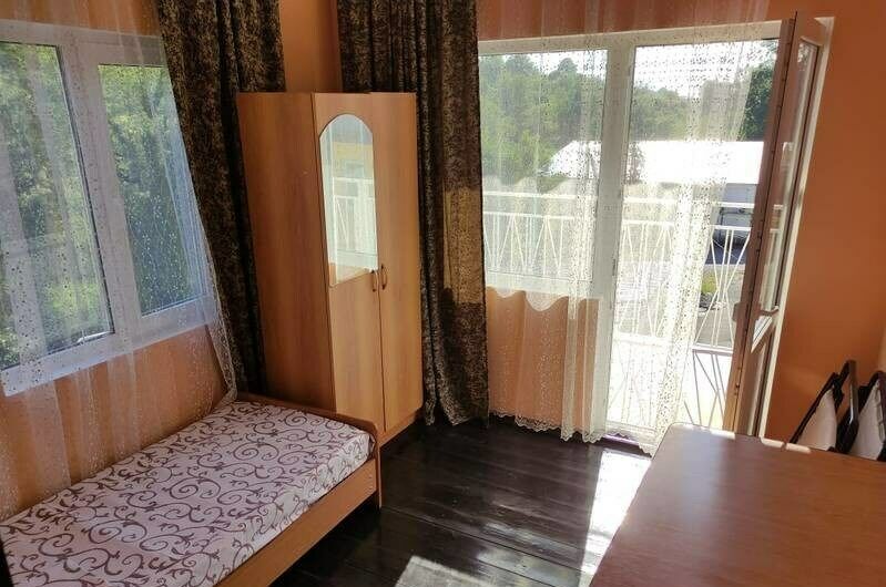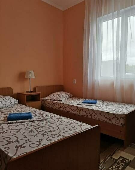 Большой двухкомнатный номер с прихожей и комнатами на разные стороны. Одна двухспальная и две односпальных кровати. Телевизор, кондиционер, холодильник, большой балкон и вид на парк лекарственных растений.