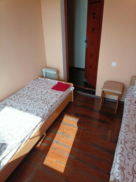 Две раздельные кровати, удобства на этаже - туалет, душ, общая кухня. Большой балкон.