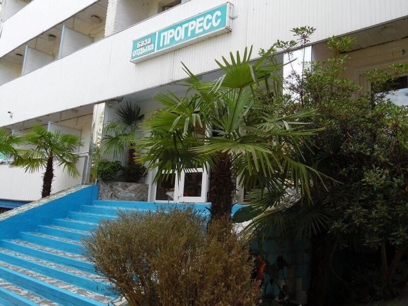 База отдыха «ПРОГРЕСС» расположена в центре курортного поселка Якорная щель на берегу моря в 100 метрах прямой видимости. Территория базы очень уютная и компактная, утопающая в субтропической растительности.