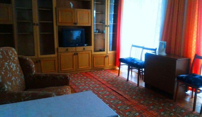 Два балкона, двуспальная кровать, мягкая мебель, шкафы, ванна, санузел, кондиционер, телевизор, холодильник, посуда.