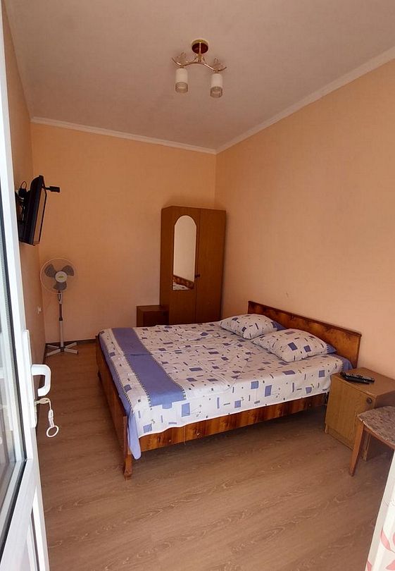 Имеется телевизор, вентилятор, шкаф, вешалка, стулья.