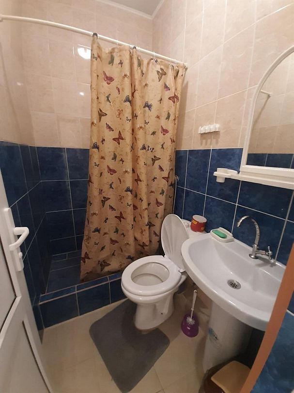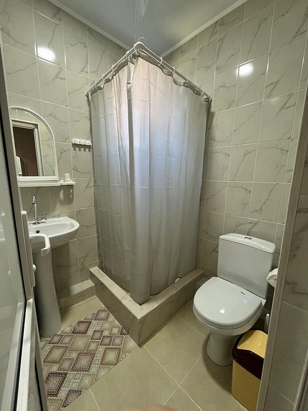 Общая ванная комната: душ, раковина, туалет.