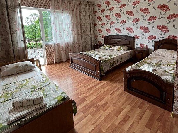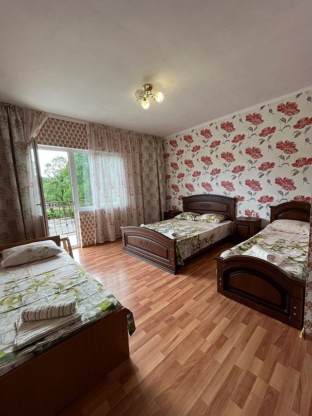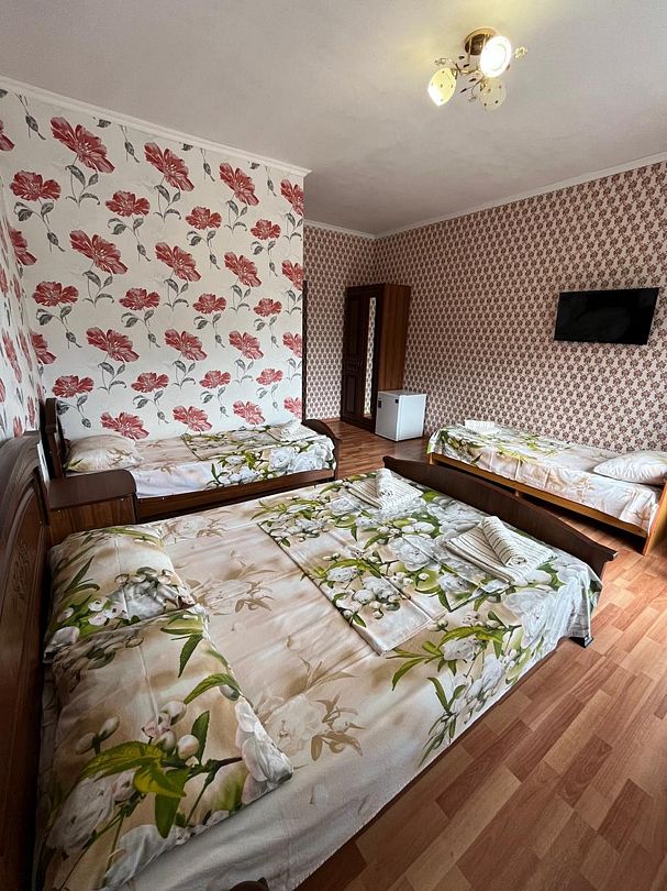 В номере: 1 двуспальная и 2 односпальные кровати.