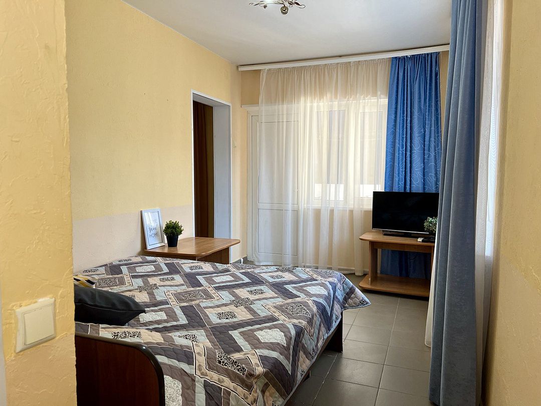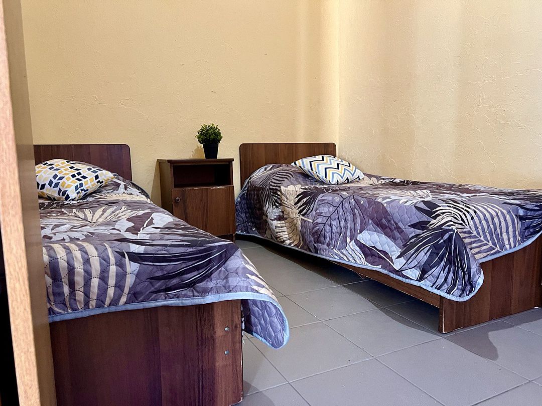 Трехэтажное здание гостевого дома предлагает тринадцать комфортабельных номеров различных категорий, каждый из которых оснащен всем необходимым для комфортного проживания: от телевизора и кондиционера до собственного санузла.