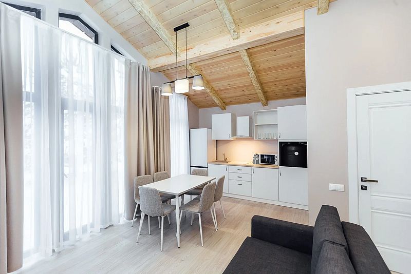 СвадьбаДостоинстваОтличное место, это рай, полный релакс и перезагрузка. Сервис великолепный, персонал очень приветливый! Чистота и порядок в домике, есть всё для комфортного проживания! Термальный бассейн и сауны это вообще песня! Приезжайте, не пожалеете!
