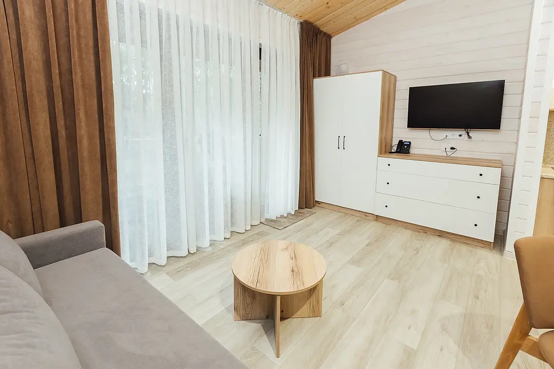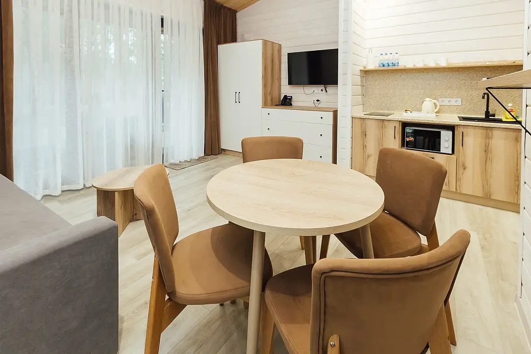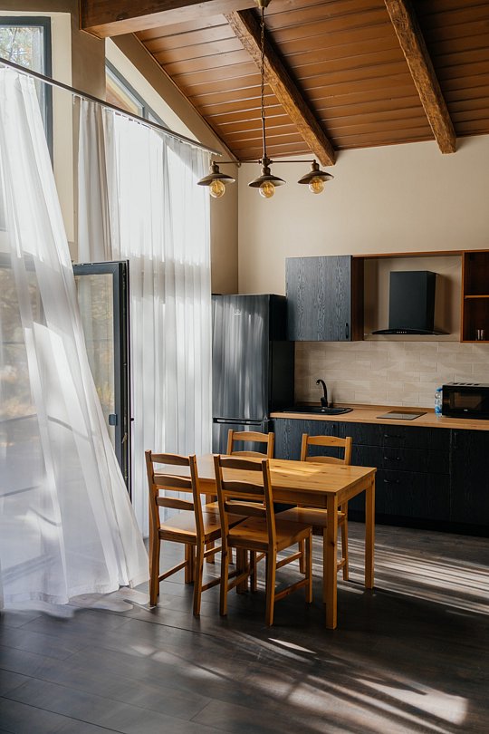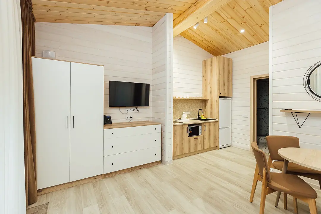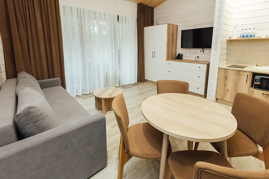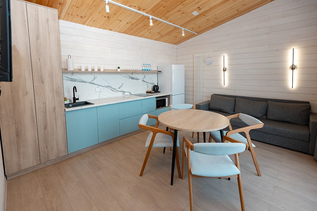Расположиться гости могут в уютных гостиничных номерах или в эко-домиках на территории. Все номера хорошо оснащены, имеется кондиционер, телевизор, бесплатный Wi-Fi, чайник, холодильник и новая мебель. В собственной ванной комнате установлена душевая кабина или ванна, а также есть набор полотенец и гостиничная парфюмерия. В домиках же имеется кухонная зона, а некоторые из них оборудованы плитой для возможности самостоятельной готовки.