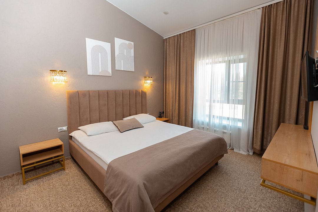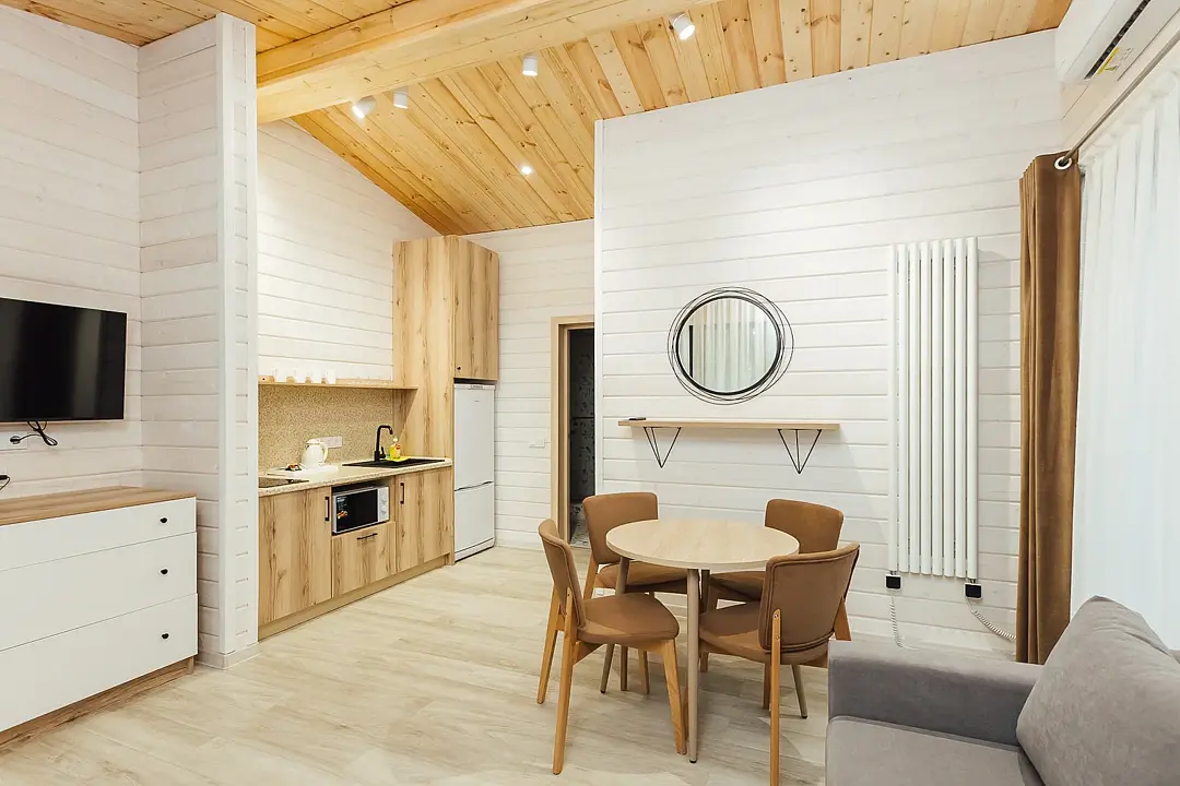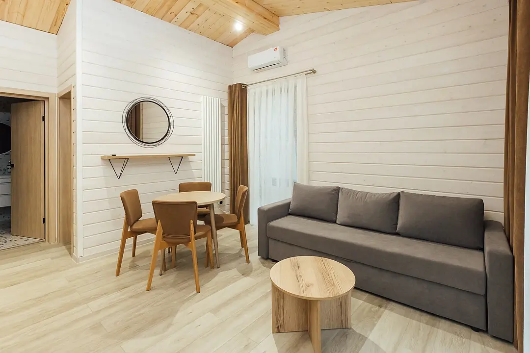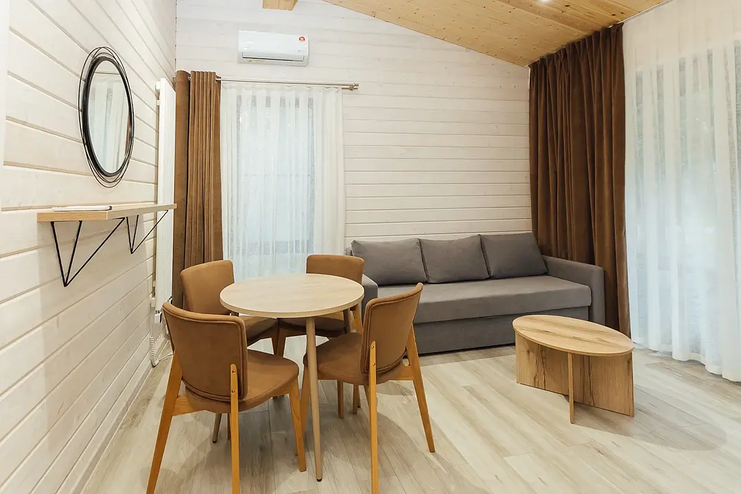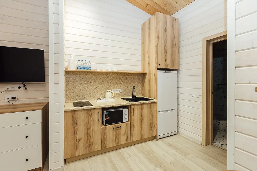 Расположиться гости могут в уютных гостиничных номерах или в эко-домиках на территории. Все номера хорошо оснащены, имеется кондиционер, телевизор, бесплатный Wi-Fi, чайник, холодильник и новая мебель. В собственной ванной комнате установлена душевая кабина или ванна, а также есть набор полотенец и гостиничная парфюмерия. В домиках же имеется кухонная зона, а некоторые из них оборудованы плитой для возможности самостоятельной готовки.