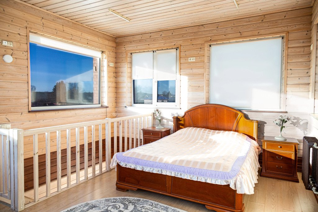 Всего в доме три спальни, в каждой из которых установлена двуспальная кровать. При необходимости в гостиной можно организовать дополнительное спальное место.