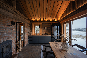 Дом площадью 50 м² для круглогодичного проживания оснащен теплым полом, системой вентиляции, кондиционером. Дом рассчитан на размещение не более 4 человек. В этот дом нельзя с детьми и животными.