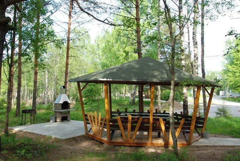 - Крытая площадка «Лесная» (до 120 чел.) столы, скамейки, деревянный танцпол, крытая сцена, электроточка 4 кВт, летняя кухня, 2 мангала, освещение, водопровод.