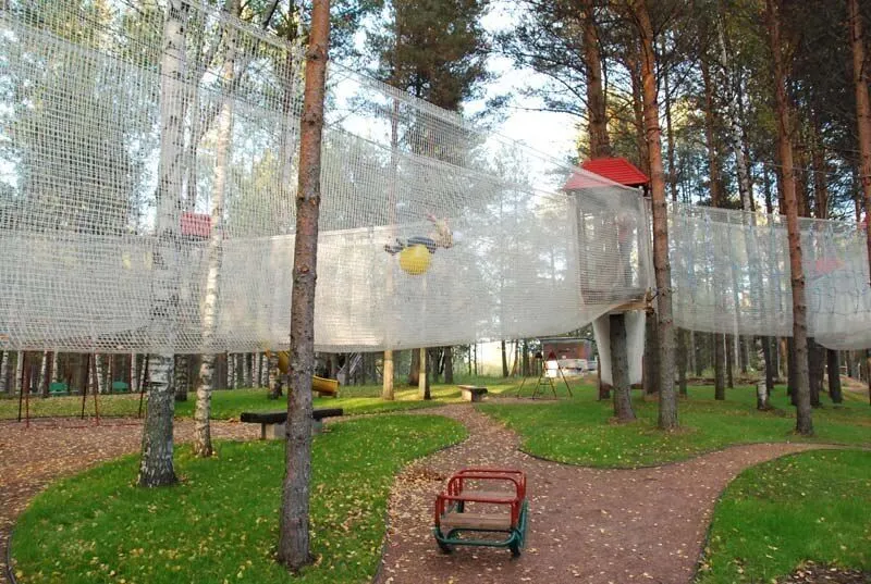 Веревочный парк для детей (от 5 до 14 лет). Состоит из 9 препятствий разной степени сложности. 2 тарзанки где дети самостоятельно едут на подвешенном тросе между деревьев. Бочки — 2 трубы подвешенные горизонтально (качаются). Лапки — пройти по натянутому канату без страховки. Лианы — не запутаться в лианах свисающих с деревьев. Бревно — переправиться на другую сторону ущелья по незакрепленному бревну. Паутина — пролезть через большую паутину. Веревочный парк оснащен страховочными сетками. Время работы с 10.00 до 22.00. ОБУВЬ ОБЯЗАТЕЛЬНА. Возраст детей допускающихся для прохождения препятствий от 5 до 14 лет, под присмотром родителей или совершеннолетних лиц.