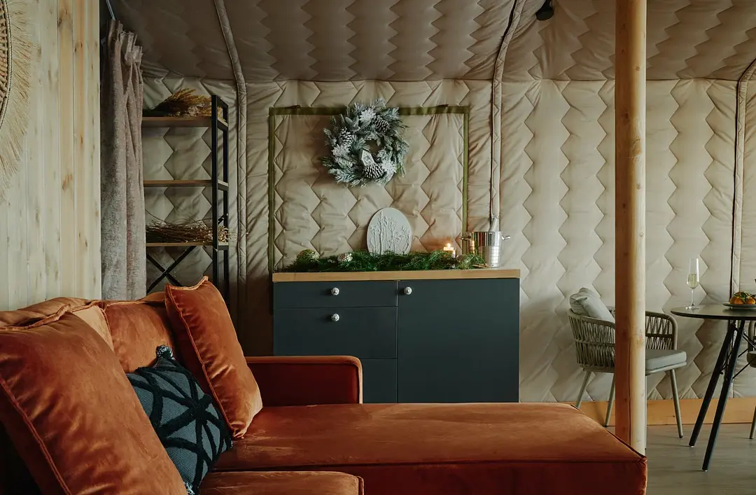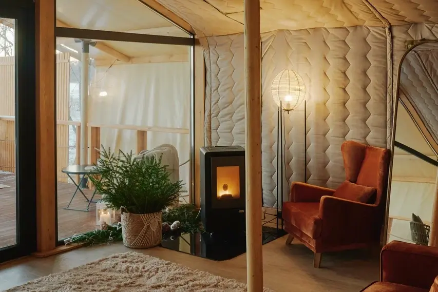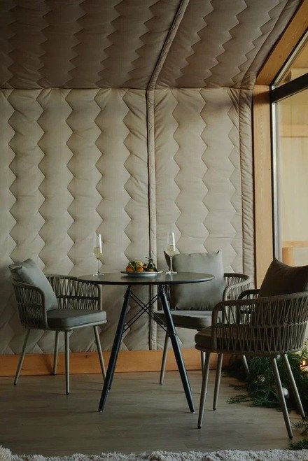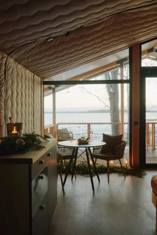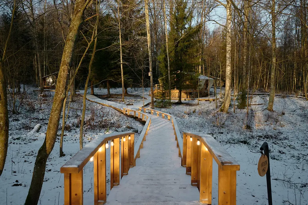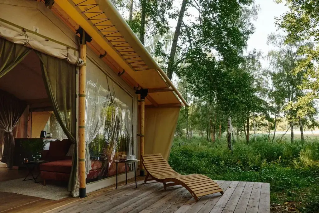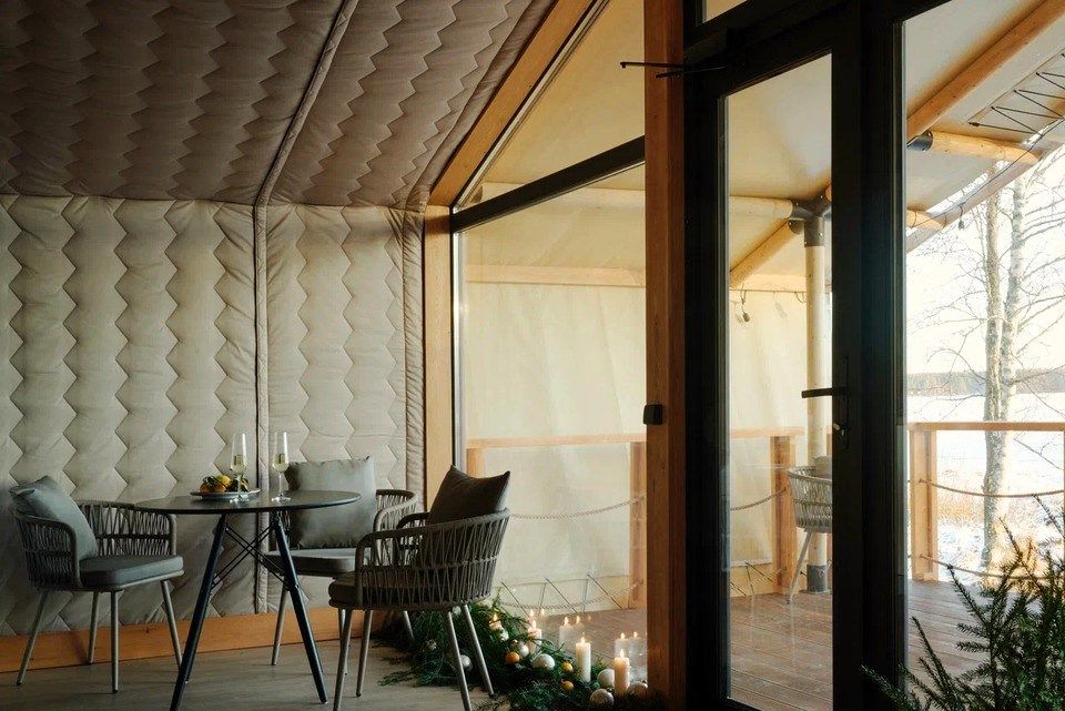 Здесь вас ждут уютные лоджи, романтические шатры и стильный гестхаус. Каждый из них предлагает уникальные условия для отдыха — будь то у воды или среди деревьев. Не упустите возможность расслабиться в фито-купели с подогревом, наслаждаясь великолепными видами.