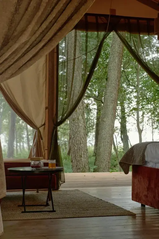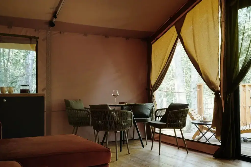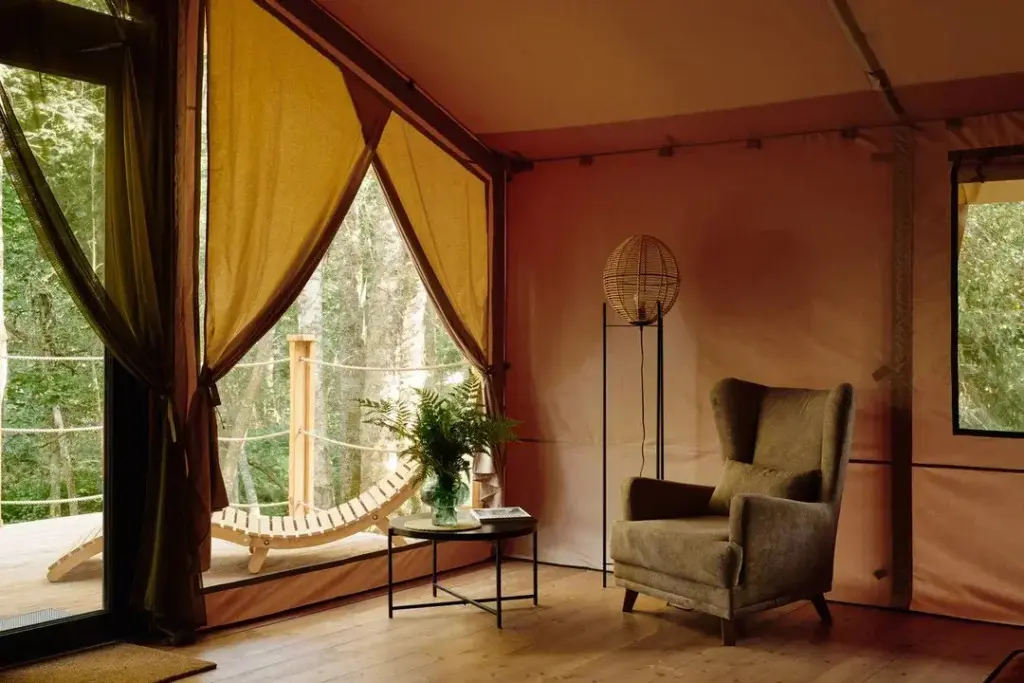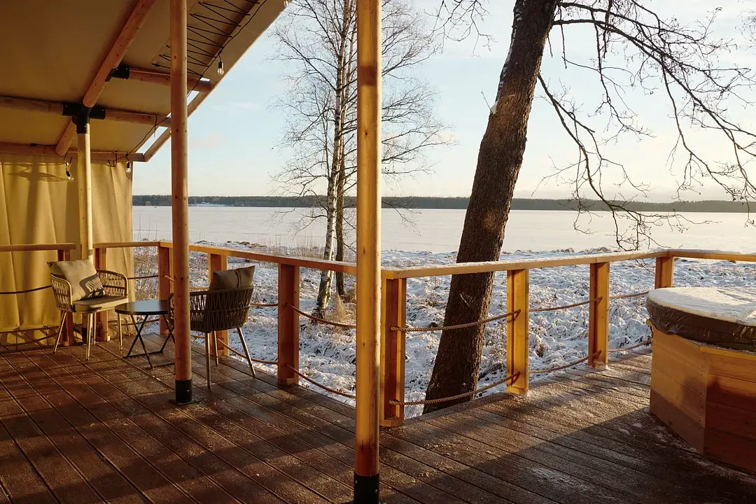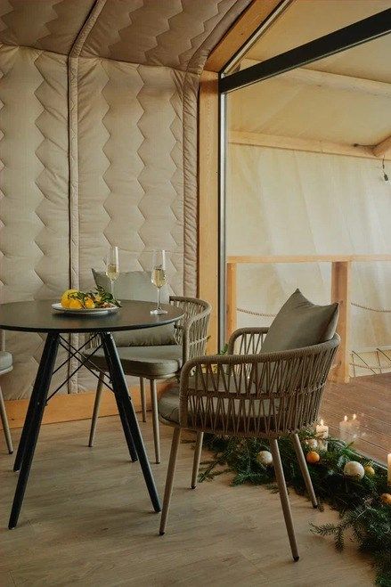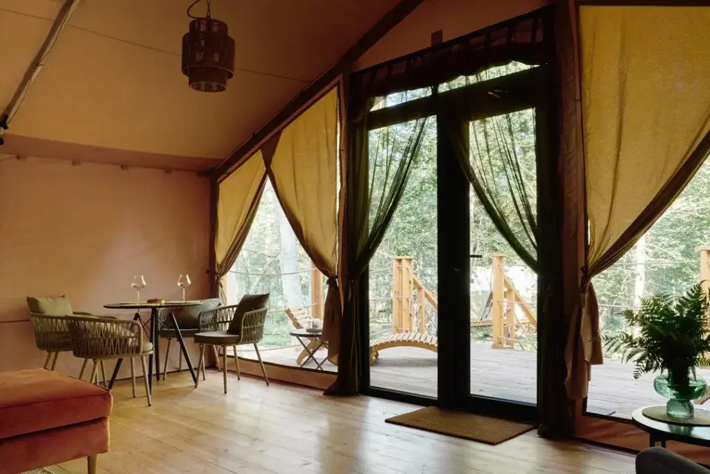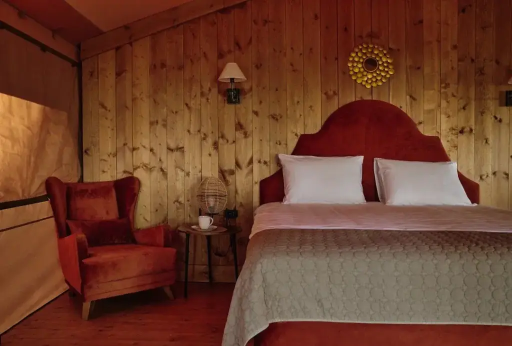 Здесь вас ждут уютные лоджи, романтические шатры и стильный гестхаус. Каждый из них предлагает уникальные условия для отдыха — будь то у воды или среди деревьев. Не упустите возможность расслабиться в фито-купели с подогревом, наслаждаясь великолепными видами.